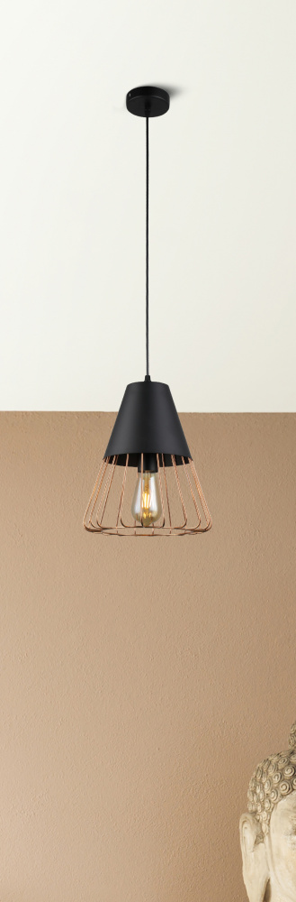 Подвес с подчёркнутой геометричностью арматуры. Миниатюрный, конкретный и уверенный в себе. Имеет стойкое гальваническое покрытие благородного золотого оттенка. Идеален для стилей лофт, минимализм, ретро, сканди. Коллекция представлена подвесом на 1 лампу.