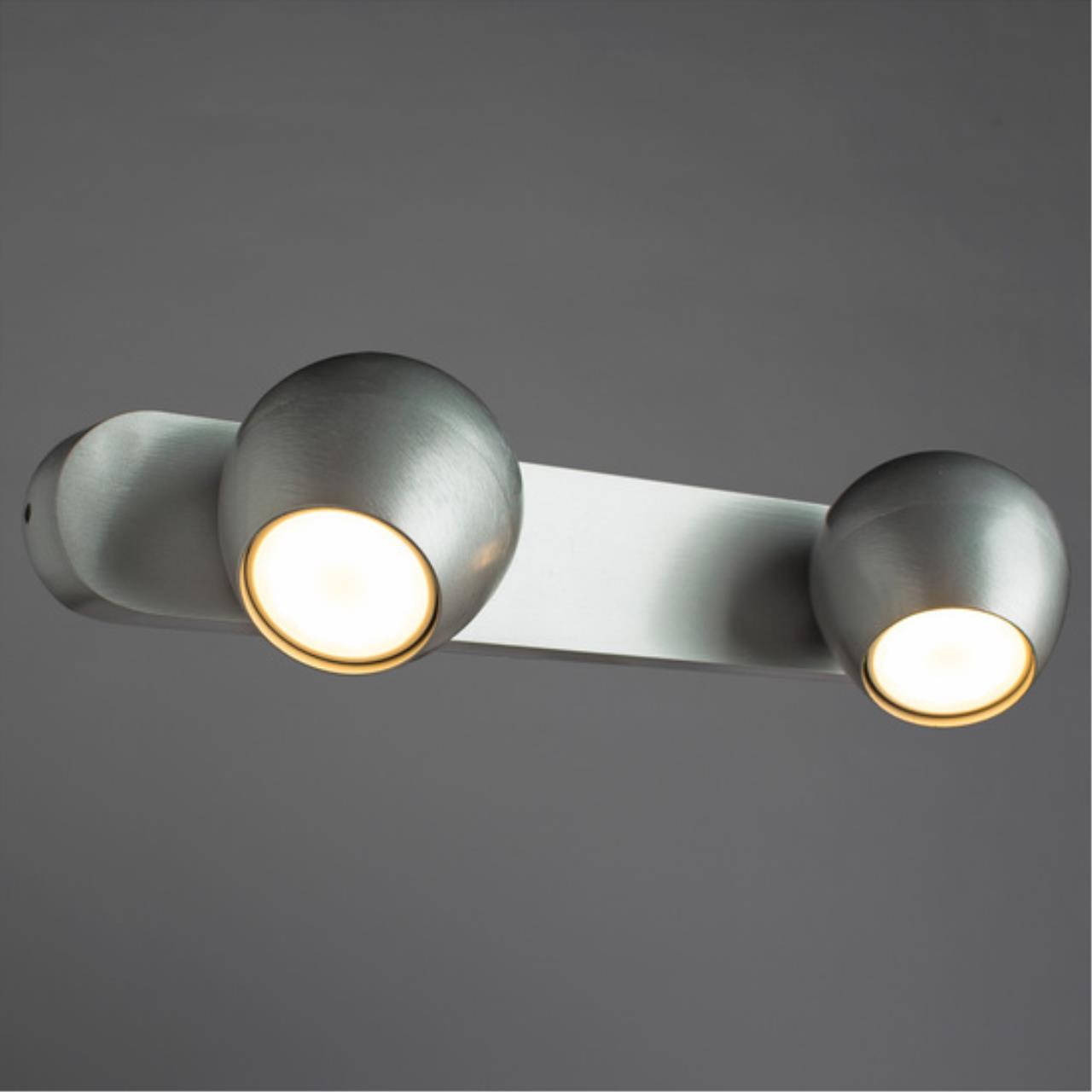 Спот Artelamp A5781AP-2SS серии Sfera. Подчеркнет стиль помещения. Размеры 20x9x12 cm. Параметры пылевлагозащиты IP — 20. Форма круглая. Плафон алюминевый серебристый, а материал/цвет арматуры металл/матовый. Использует 2 лампы с цоколем GU10. Площадь освещения охватывает 6.28 m². Идеально подходит для кафе и ресторанов. Страна происхождения бренда — Италия.