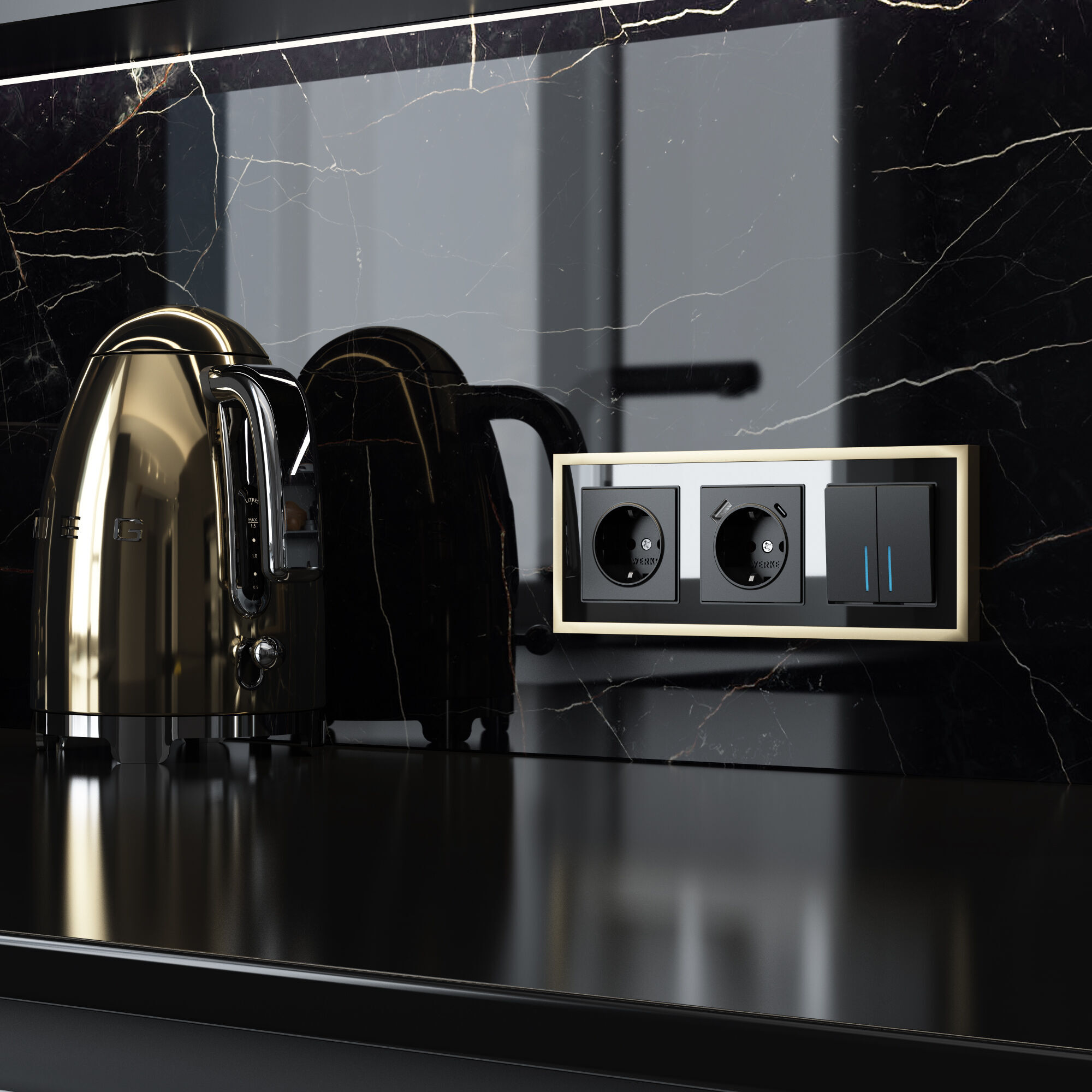 Составная рамка из трендовых материалов сочетает металлический контур и внутреннюю вставку из акрила. Строгая геометрия форм рамки легко находит поддержку в объектах интерьеров различных стилей. Цветовые решения рамок Baguette идеальны как для контрастных, так и для однотонных комбинаций с механизмами Werkel.