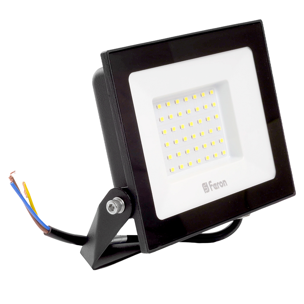 Прожектор светодиодный многоматричный с монтажным креплением на кронштейн, (ДО) FERON LL-921, 50W, 6400К (холодный белый), 230V/50Гц, 5000Lm, IP65, угол рассеивания 120°,*SMD2835, раб.t -40°C - +40°C, цвет чёрный, корпус алюминий литой под давлением + стекло, 174*151*29 мм