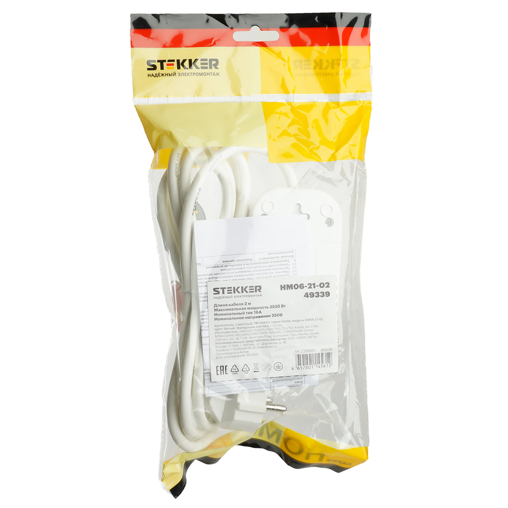 Удлинители STEKKER 49339, серия Home, цвет белый, длина 2 м, количество розеток 2, сталь, сечение кабеля 1 мм2, тип кабеля ПВС, материал кабеля -, ток 16А, напряжение 250В, максимальная нагрузка 3520Вт, тип вилки - прямая. Диапазон рабочих температур +1..+35°C, степень защиты IP20, класс защиты от поражения эл. током 1, размеры изделия -*-*-. Гарантия 1 год.
