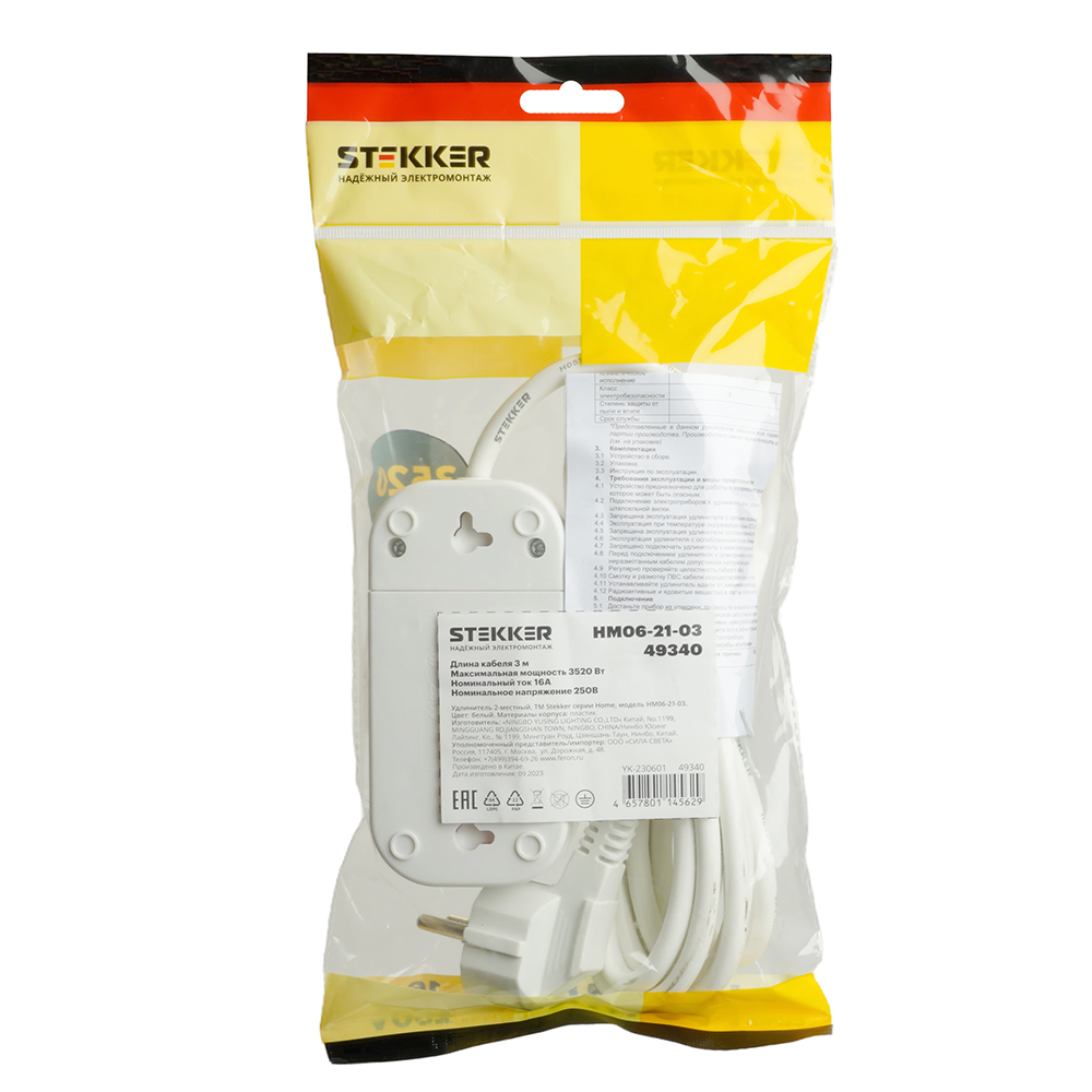 Удлинители STEKKER 49340, серия Home, цвет белый, длина 3 м, количество розеток 2, сталь, сечение кабеля 1 мм2, тип кабеля ПВС, материал кабеля -, ток 16А, напряжение 250В, максимальная нагрузка 3520Вт, тип вилки - прямая. Диапазон рабочих температур +1..+35°C, степень защиты IP20, класс защиты от поражения эл. током 1, размеры изделия -*-*-. Гарантия 1 год.