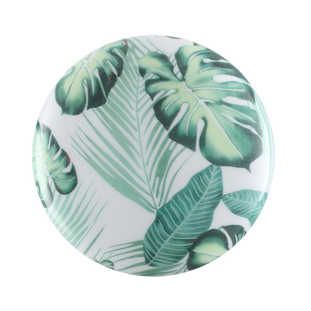 Светильник 7748/СL линии FLORI состоит из металлического основания (базы) и пластикового рассеивателя. Материал рассеивателя - высококачественный пластик марки PMMA 2.0 белого цвета с глянцевой поверхностью, обеспечивающий светильнику равномерное рассеивание и хорошее светопропускание. Форма плафона: круглая, декорирована орнаментом на плафоне с зеленым рисунком тропических листьев и съемным ободом белого цвета. Рисунок на плафоне выполнен методом цифровой печати по технологии прямого нанесения красок на акриловый лист. С целью предотвращения выцветания красок поверх рисунка наносится слой белой краски. После выдувания плафона при высоких температурах красочный рисунок приобретает стойкость и долговечность. Степень защиты IP43 позволяет использовать светильник в определенных зонах влажных помещений. В комплект входит заменяемый LED модуль с линзами, мощностью 30Вт, которая соответствует лампе накаливания 270Вт. Источник света имеет комфортную цветовую температуру 4000К (белый свет).