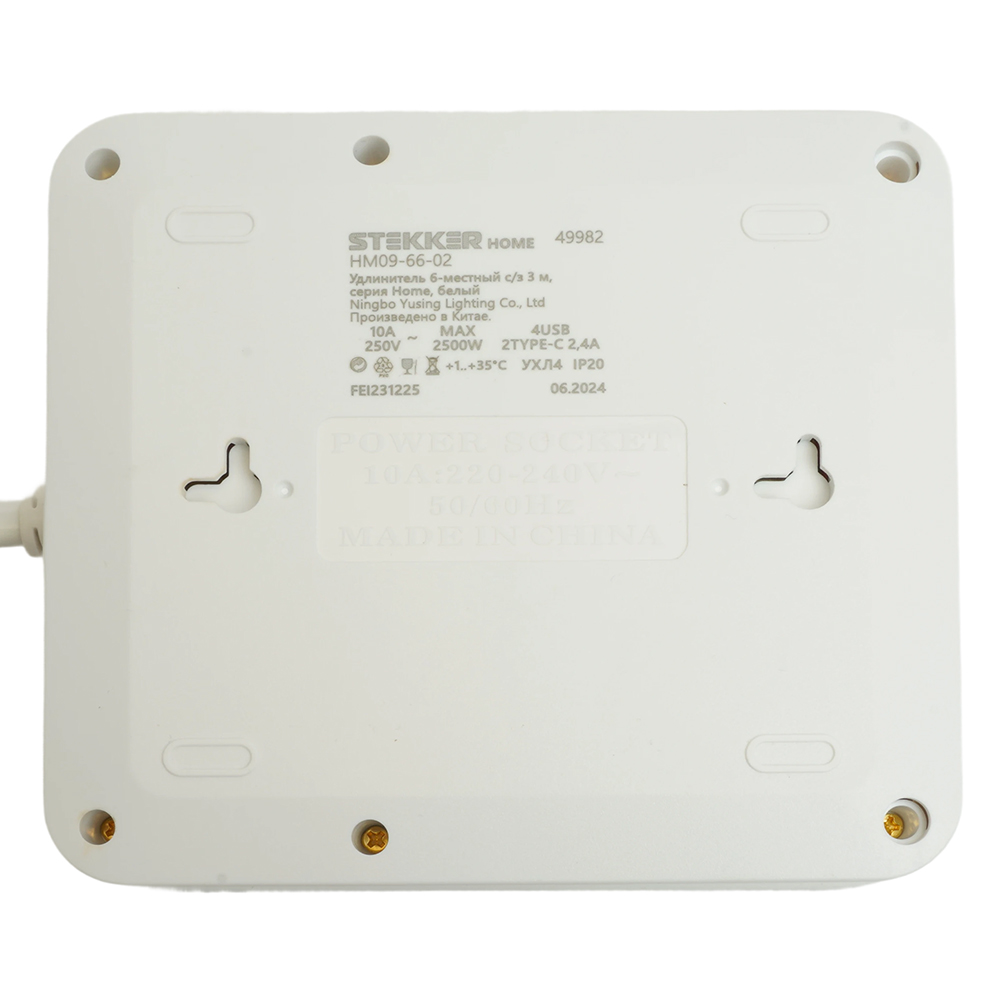 Удлинители STEKKER HM09-66-02, серия Home plus, цвет белый, длина 3 м, количество розеток 6, сталь, сечение кабеля 1 мм2, тип кабеля ПВС, материал кабеля -, ток 10А, напряжение 250В, максимальная нагрузка 2500Вт, тип вилки - прямая. Диапазон рабочих температур  +1..+35°C, степень защиты IP20, класс защиты от поражения эл. током 1, размеры изделия -*-*-. Гарантия 1 год.