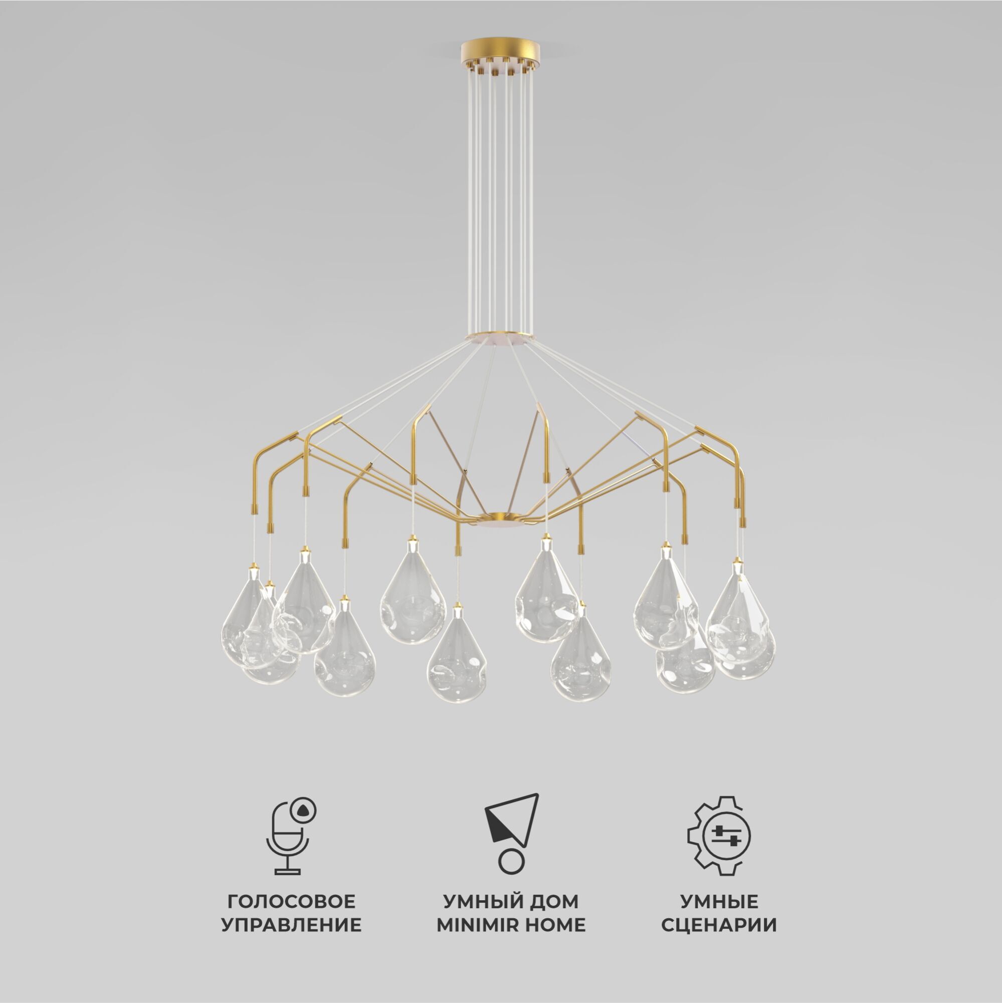 Умный светильник  201002/12 латунь Smart станет настоящим украшением вашего дома, притягивая взгляды и вызывая восхищение.Каркас люстры, выполненный в благородном цвете латунь, служит надежной основой для прозрачных стеклянных плафонов. Их форма, словно застывшая вода, добавляет легкости и воздушности всей конструкции.Стеклянные мятые плафоны рассеивают свет, создавая мягкое и приятное освещение. Они словно наполнены мерцающими огоньками, придавая интерьеру особый шарм.