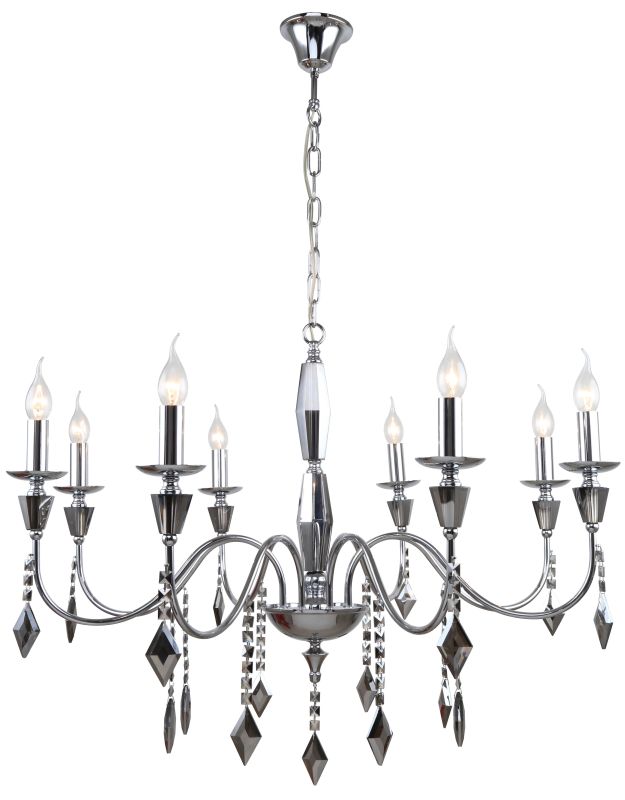 Люстра подвесная из коллекции Grace / Грейс выполнена из металла, гальванизированного в цвет тонированного хрома, и декорирована массивами хрусталя и хрустальными подвесками в форме ромба цвета тонированного хрома. Премиальное качество и неповторимыи? дизаи?н светильников идеально подои?дут как в классические, так и современные интерьеры.