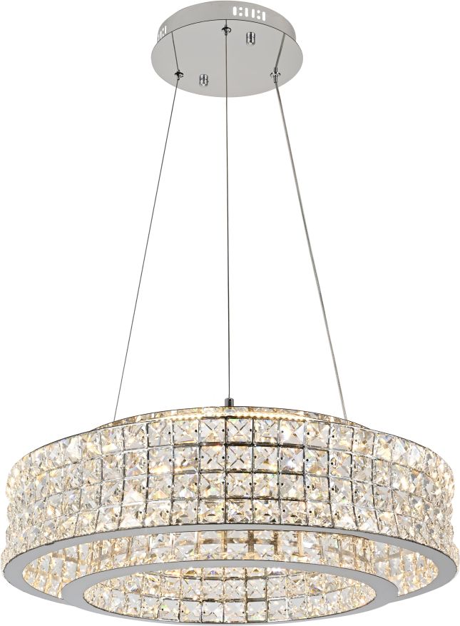 Люстра подвесная эксклюзивной коллекции Karnelli / Карнелли выполнена из нержавеющей стали хромированного цвета и декорирована текстурным хрусталем высшей категории. Модель комплектуется пультом дистанционного управления 2,4G и драйвером высокого качества европейского стандарта T?V, обеспечивающим переключение трех режимов световой температуры и диммирование. Премиальное качество и неповторимыи? дизаи?н светильников идеально подои?дут как в классические, так и современные дизайнерские интерьеры. Из данной коллекции светильников можно сделать индивидуальный заказ любого цвета и размера.