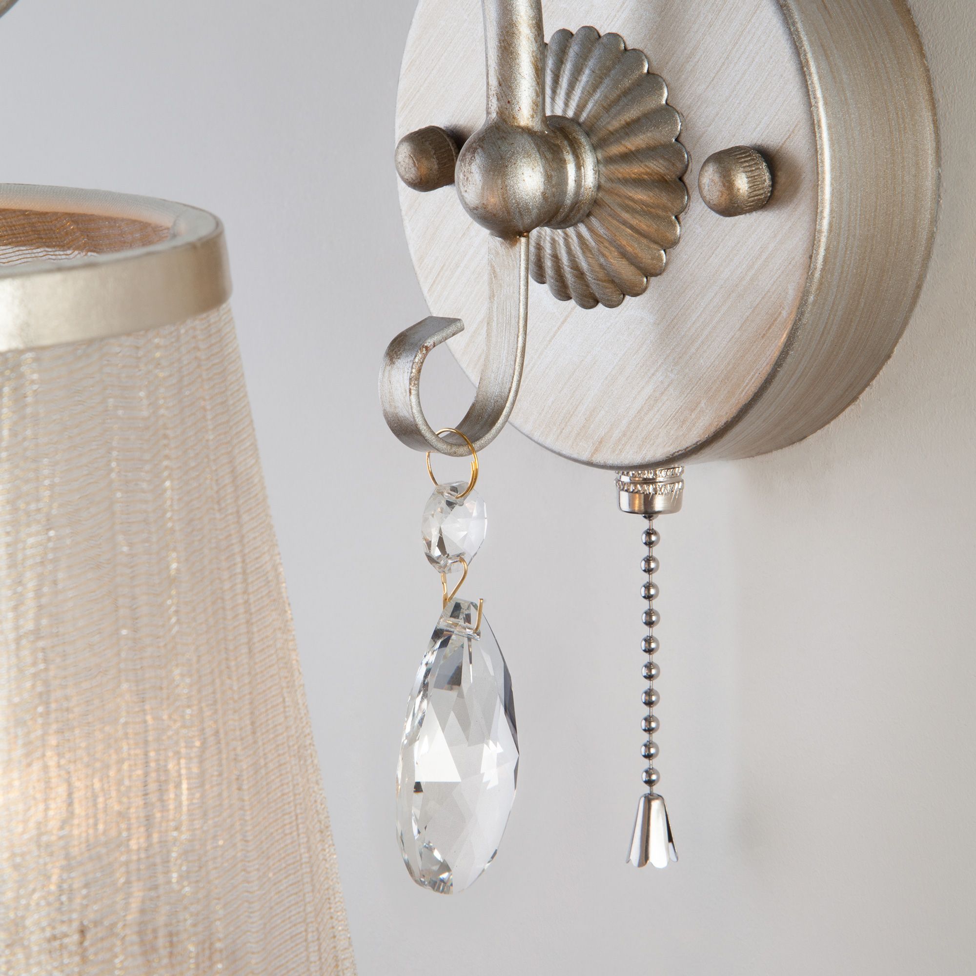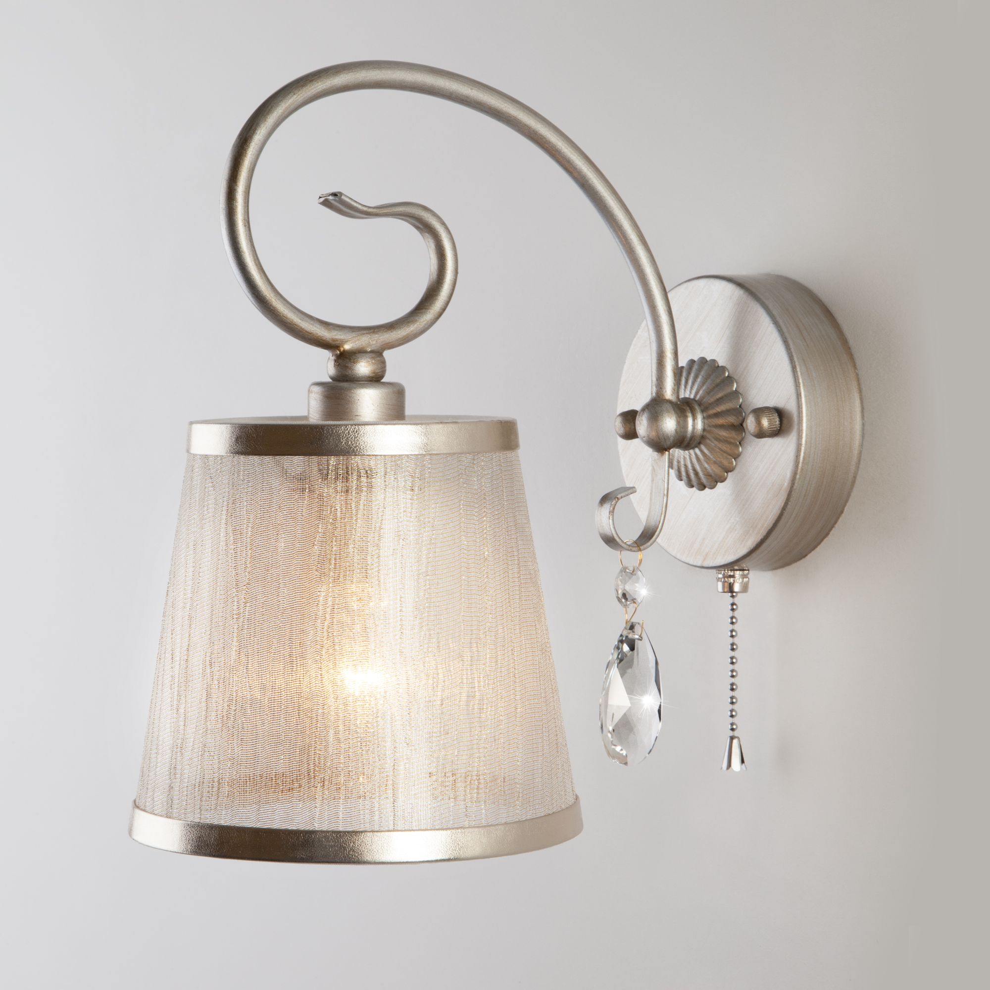 Утонченная серия светильников Liona идеально дополнит как классические, так и современные интерьеры. Великолепный образ сложился из сочетания воздушного основания в сдержанном цвете состаренного серебра, полупрозрачных абажуров и хрустальных подвесок.