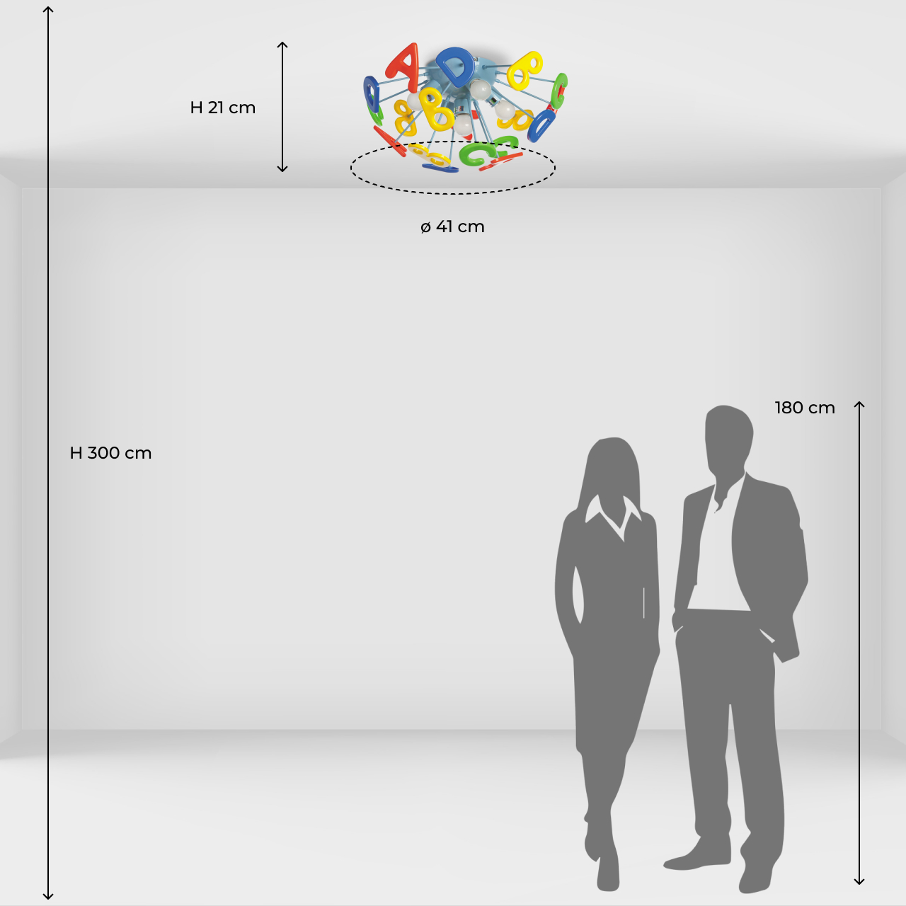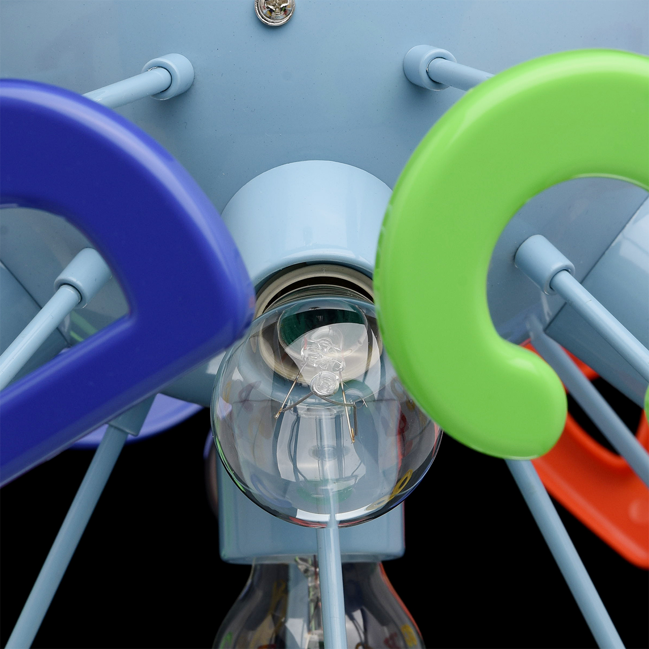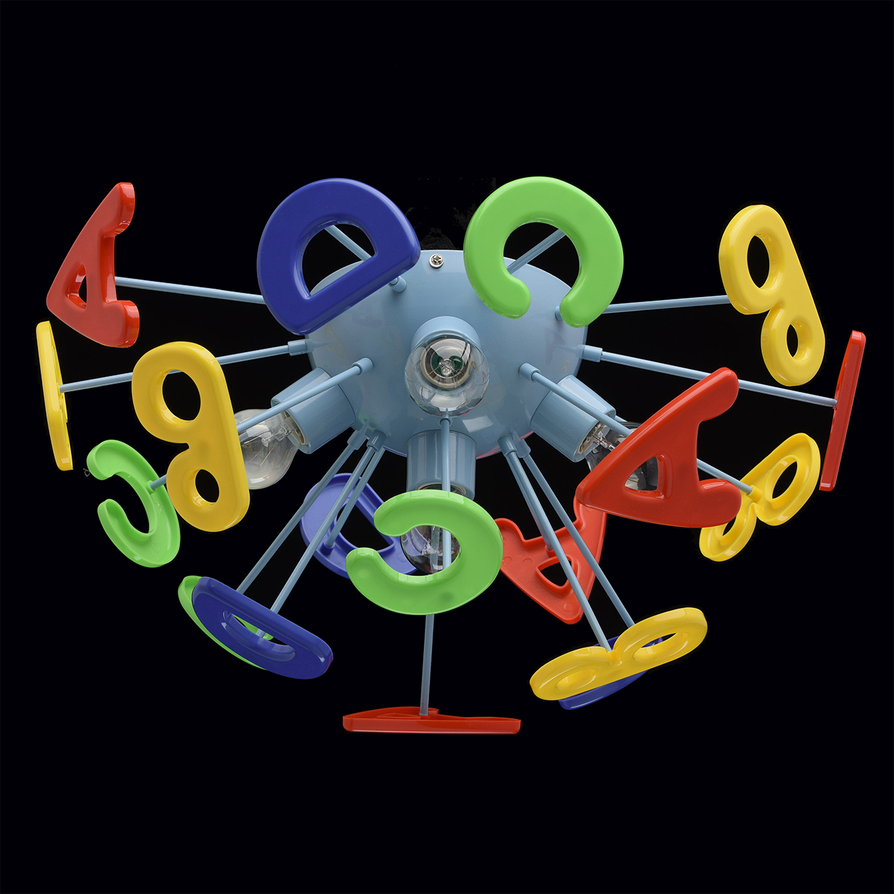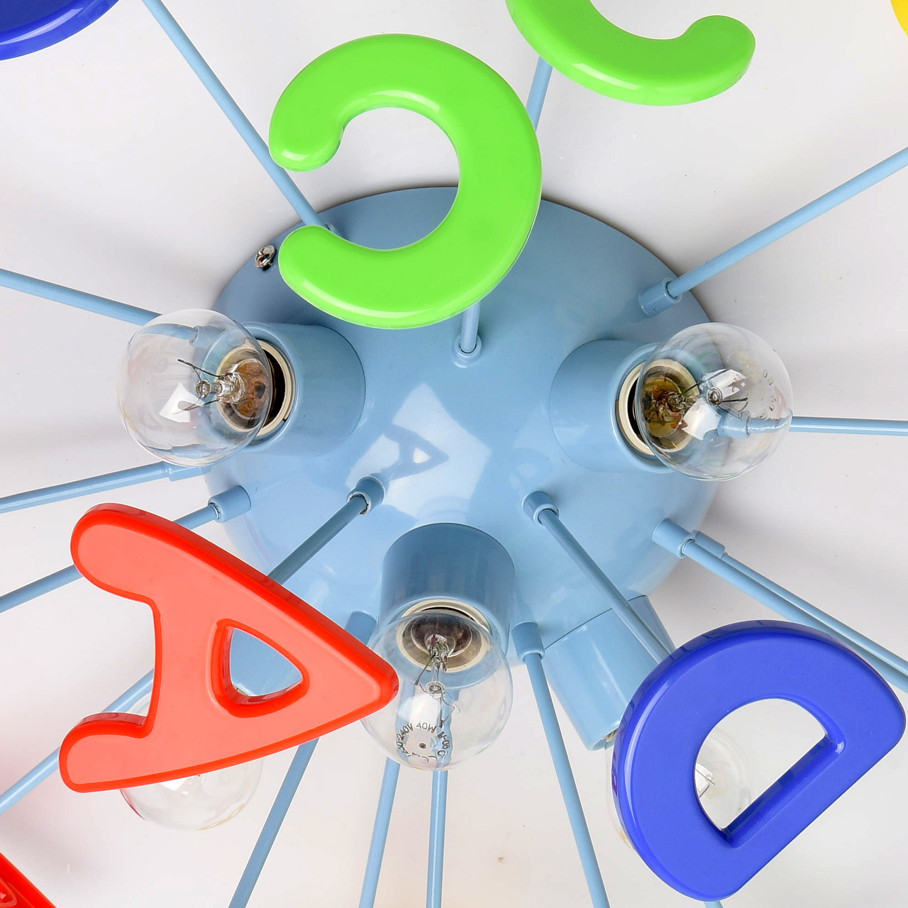 Эта яркая и необычная люстра из коллекции «Улыбка»  станет отличным дополнением любой детской комнаты. Её радужный, цветной дизайн всегда будет вносить в обстановку ребяческую непосредственность и беззаботность. Основание люстры выполнено из окрашенного металла и удачно сочетается с абажуром в виде красочных разноцветных букв, изготовленных из высококачественного пластика. Такая люстра станет источником не только света, но и позитива! Рекомендуемая площадь освещения порядка 10 кв.м.